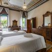 La stanza con due letti singoli, rappresenta un perfetto esempio di eleganza e raffinatezza d'altri tempi. I letti, con testiere in legno finemente intagliato, emanano un senso di solennità, richiamando un'epoca in cui l'artigianato e l'attenzione ai dettagli erano centrali. Le pareti sono impreziosite da una tappezzeria dai motivi floreali delicati, che aggiunge un tocco di calore e accoglienza.