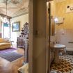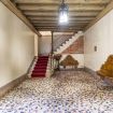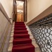 All'interno, le scale che portano all’appartamento mantengono il carattere autentico dell’edificio. Rivestite con un elegante tappeto rosso, si snodano attraverso una struttura in marmo, accompagnate da un corrimano in ottone che aggiunge un tocco di raffinatezza. Il pavimento a mosaico e il soffitto con travi a vista, decorato con motivi floreali, accolgono gli ospiti in un ambiente che combina perfettamente la storia con un’eleganza senza tempo. Salendo, ogni passo è un viaggio nel tempo, un invito a scoprire gli angoli più suggestivi di questa dimora storica, che ha mantenuto intatto il suo fascino attraverso i secoli.