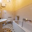 l bagno principale dotato di vasca, con i suoi dettagli vintage, è un piccolo gioiello di eleganza. Il pavimento in mosaico, dai motivi geometrici, dona un tocco di colore e vivacità, in contrasto con la sobrietà delle pareti. Gli arredi, semplici ma funzionali, sono perfettamente integrati in questo spazio che combina praticità e stile, offrendo tutto il necessario per il relax quotidiano.