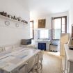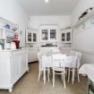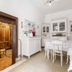 La cucina di questo storico palazzo a Venezia è un vero gioiello che unisce l'eleganza classica alla funzionalità moderna. Con i suoi mobili bianchi dal sapore antico, richiama l'atmosfera delle cucine di un tempo, dove ogni dettaglio era curato con amore e dedizione. Il grande tavolo centrale, perfetto per accogliere piacevoli colazioni o cene in famiglia, è circondato da mobili d'epoca, che conferiscono all'ambiente un carattere unico e raffinato. Le vetrinette, con le loro ante in vetro, espongono con grazia stoviglie e ceramiche, mentre le mensole sulle pareti offrono uno spazio perfetto per oggetti d'arredo che arricchiscono l'atmosfera.