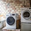 Il palazzo offre una zona lavanderia, situata in un angolo pratico e accessibile della casa, unisce semplicità e funzionalità in un ambiente essenziale. Le pareti in mattoni a vista donano un tocco rustico e autentico, creando un interessante contrasto con gli elettrodomestici moderni e tecnologicamente avanzati. La lavatrice e l’asciugatrice, con il loro design elegante e contemporaneo, sono pronte a soddisfare ogni esigenza domestica, offrendo praticità e comfort. Accanto, un lavandino in cemento, dal design lineare e robusto, aggiunge un ulteriore elemento di utilità, rendendo questo spazio perfetto per le necessità quotidiane. Questo ambiente, pur nella sua semplicità, trasmette un senso di efficienza e cura, dove ogni dettaglio è pensato per facilitare la vita di chi lo utilizza.