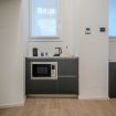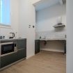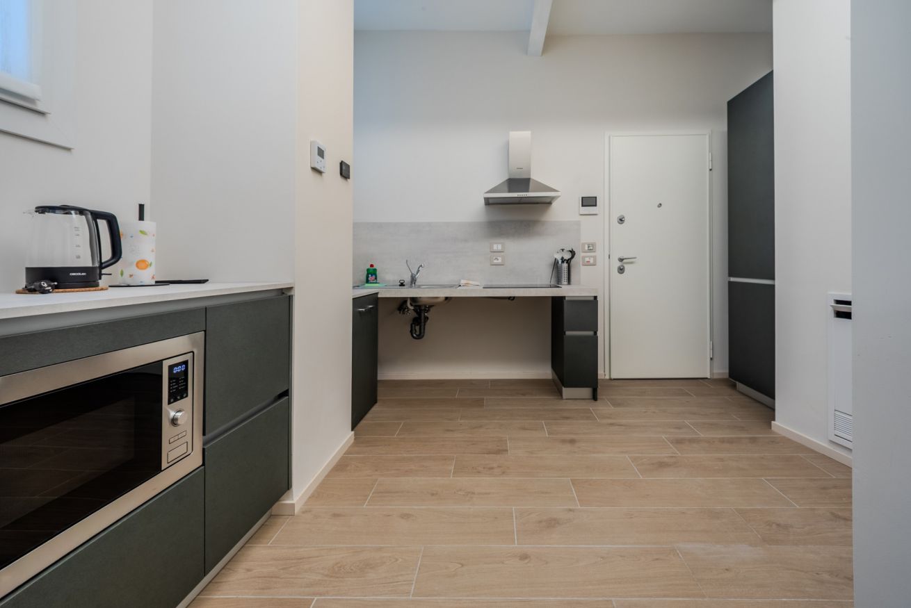 L’ingresso è a livello strada, senza gradini, e consente un accesso agevole anche a chi utilizza la sedia a rotelle. La zona giorno è luminosa e ordinata, con arredi essenziali che favoriscono la fruibilità degli spazi. L’angolo cottura è completamente attrezzato e progettato per risultare comodo sia in piedi sia da seduti, con piano di lavoro accessibile e area sottostante libera per un eventuale accostamento frontale.