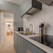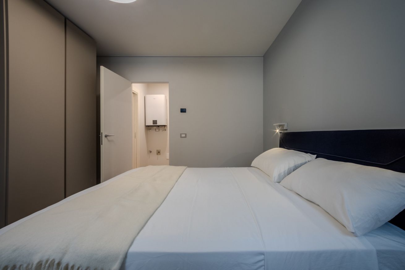 L’ingresso introduce subito all’identità contemporanea dell’appartamento. Linee pulite, colori neutri e materiali moderni creano una prima impressione ordinata e raffinata.