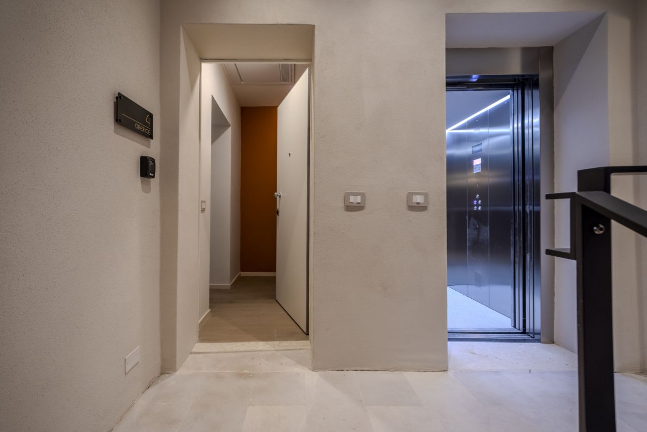 Lo spazio è comodamente raggiungibile in ascensore, seguito da una breve rampa di scale, ed è pensato per offrire praticità anche durante soggiorni più lunghi.