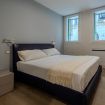 Le finestre assicurano luce naturale durante il giorno, mentre l’arredo essenziale contribuisce a una sensazione di calma e ordine, ideale per il riposo.
