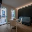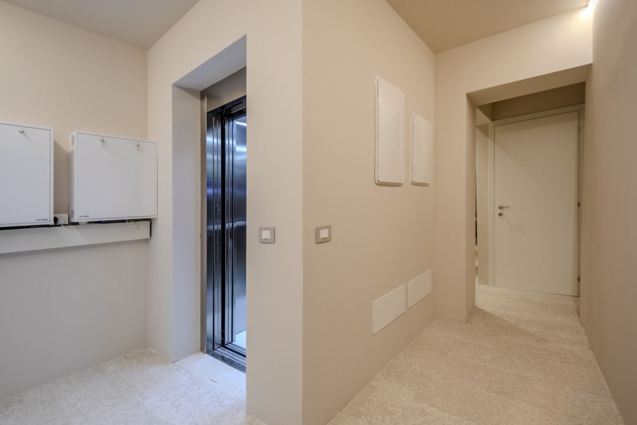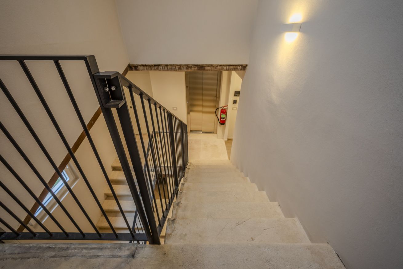 Lo spazio è comodamente raggiungibile in ascensore, seguito da una breve rampa di scale, ed è pensato per offrire praticità anche durante soggiorni più lunghi.