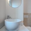 I rivestimenti neutri e l’illuminazione ben distribuita contribuiscono a creare una sensazione di pulizia e comfort, ideale per iniziare o concludere la giornata in totale relax.