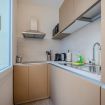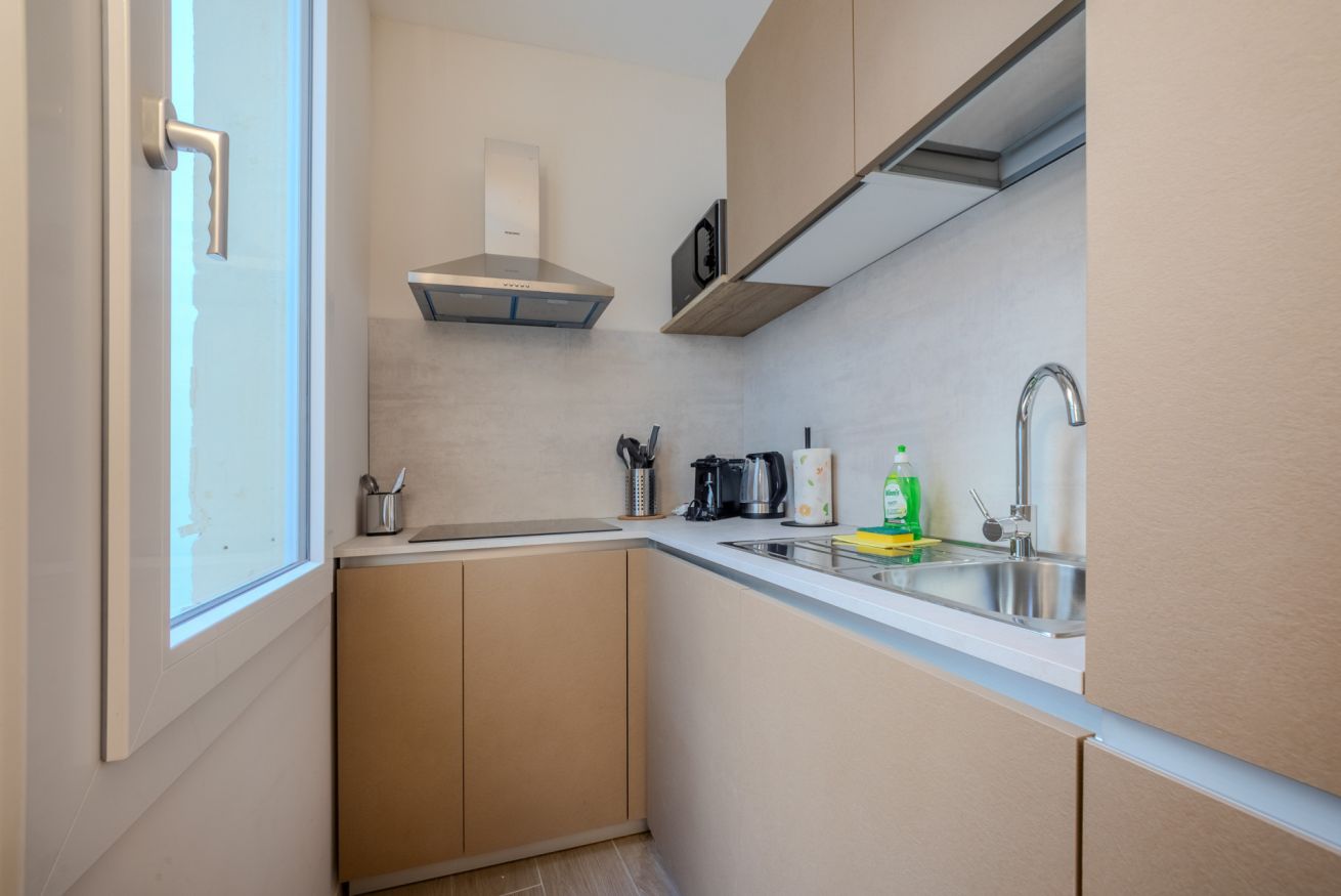 Compatta, moderna e perfettamente organizzata, la cucina è pensata per offrire funzionalità senza rinunciare all’estetica. Superfici pulite, elettrodomestici essenziali e luce naturale creano uno spazio pratico e piacevole, ideale per preparare un pasto leggero o gustare un buon caffè prima di uscire.